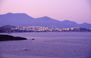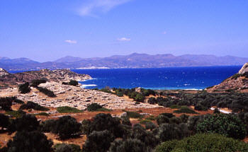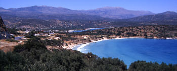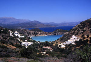 man die Küstenstraße entlang des Mirambelou Golf. Grund ist die herrliche Landschaft, der streckenweise mehr Beachtung geschenkt wird als dem Verkehr. An der New Road - der Palast von Gournia. |