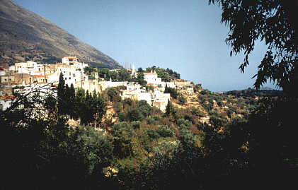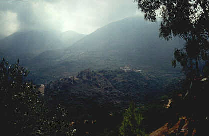 Bedrohlich hingen dicke Wolken über den Bergzügen des Oros Orno. Gut, das wegen der kurvenreichen Strecke nicht schnell gefahren werden konnte. Die Landschaften muss man einfach genießen. Irre schöne Täler, bewaldete Berghänge; dann wieder Aussichten auf die Küste und hinter der nächsten Kurve ein Bergdorf.