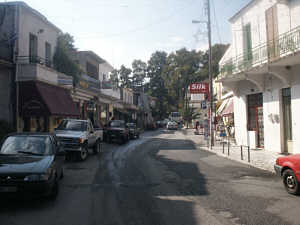 der Ort sehr lebhaft. Tankstellen, Geschäfte und Tavernen bestimmen das Ortsbild, und da auf der Hauptstraße wild geparkt wird, kommt es öfters zu Stockungen, wenn Busse oder LKW's sich zwischen den parkenden Autos durchquetschen. |